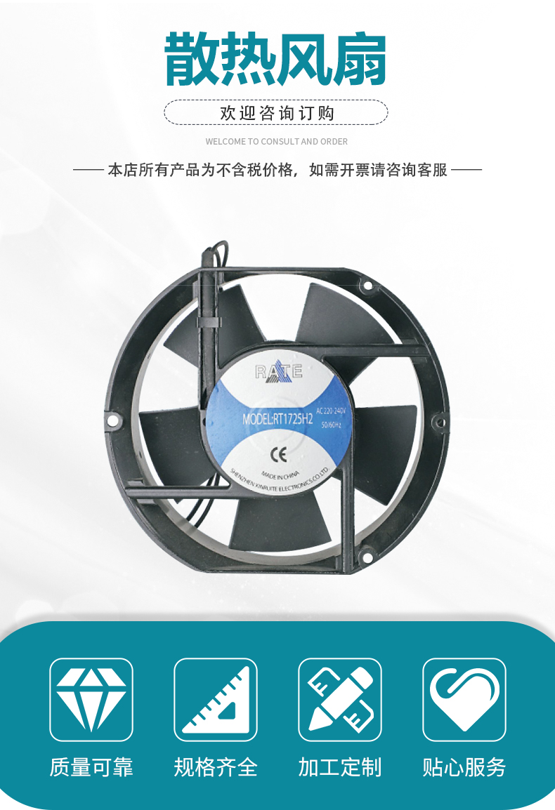 220V 金属压铸排气风扇无刷交流风扇 技术规格:- 电压:220VAC, 频率:50/60,功率:35 瓦, 轴承样式:套筒,风量:150 CFM, 速度:2500 RPM,噪音:45 分贝……
