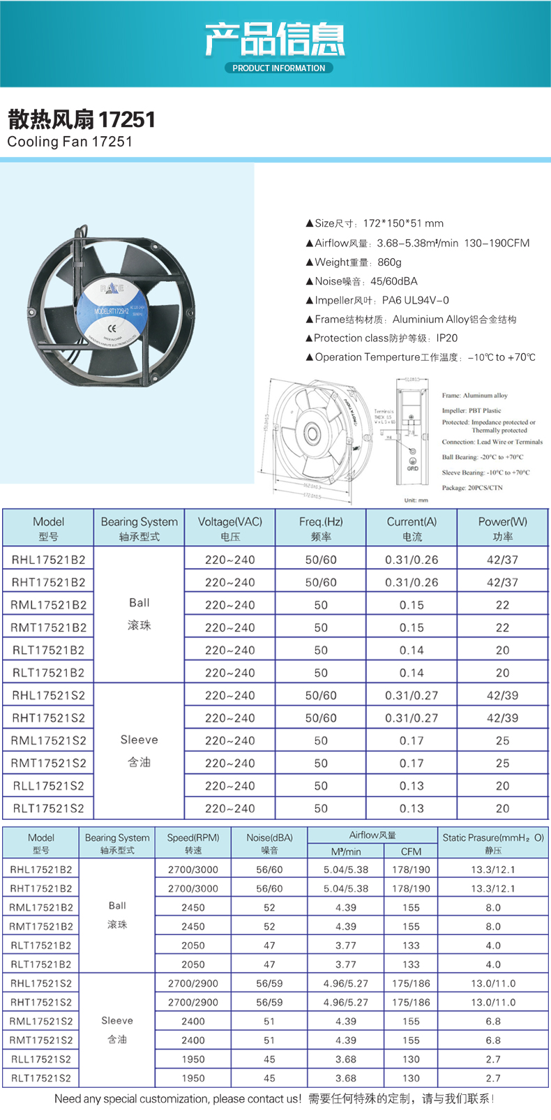 尺寸:254*89mm 重量:2018G 噪音:86.2分贝 风叶:PA6 UL94V-0 防护等级:IP20