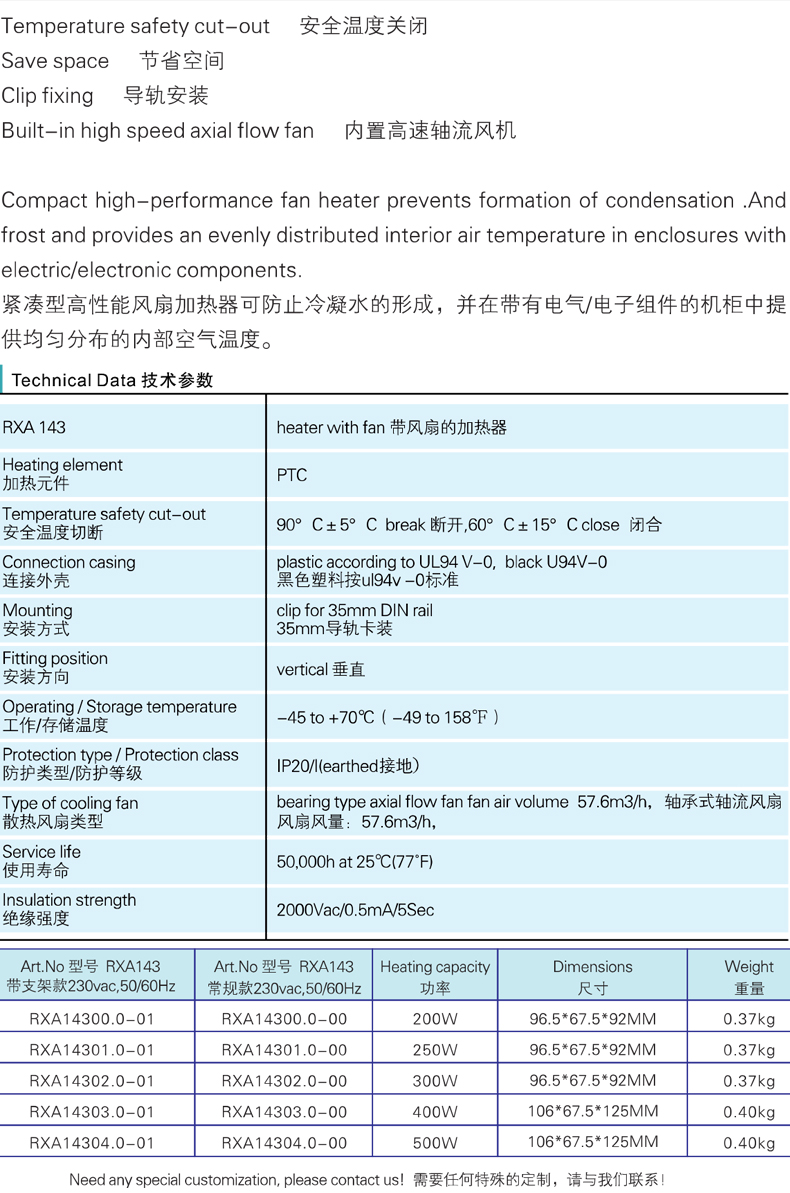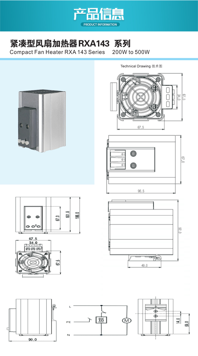 紧凑型风扇加热器RXA143系列